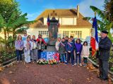 Les élèves ont écouté les discours du représentant des anciens combattants et de M. Bordais Maire de Sannerville.